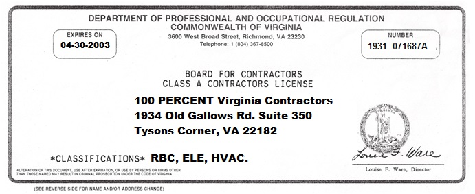 Así lucirá su licencia de Contratista en Virginia: